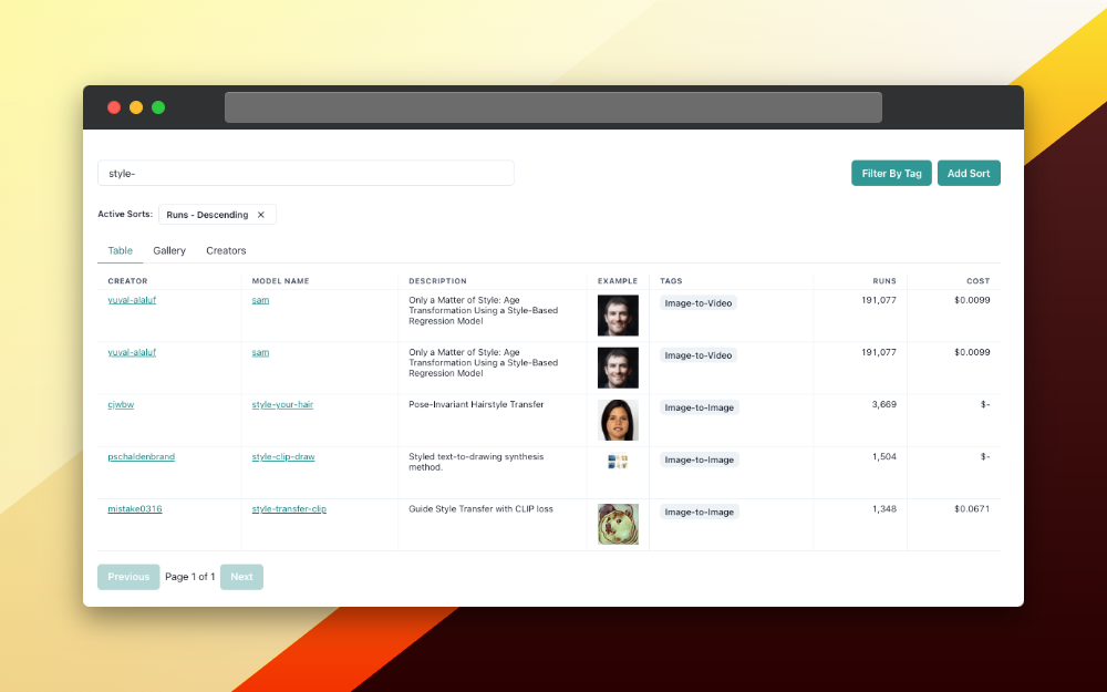 By applying these filters, you can find the models that best suit your specific needs and preferences. For example, if you're looking for an image manipulation model that's the most popular or most affordable, you can search and then sort by the relevant metric.
