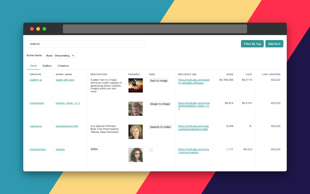 Replicate Codex is a fantastic resource for discovering AI models that cater to various creative needs, including image generation, image-to-image conversion, and much more. It's a fully searchable, filterable, tagged database of all the models on Replicate, and also allows you to compare models and sort by price or explore by the creator. It's free, and it also has a digest email that will alert you when new models come out so you can try them.